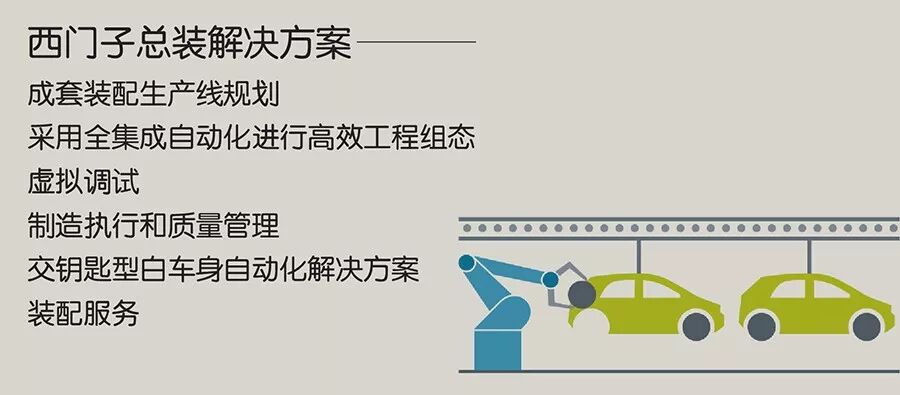 西门子的总装解决方案可对制造流程的复杂性进行管理,使总装线能处理多个不同车型及其变种并将生产中断降至最低,从而帮助客户大幅提升盈利率。
